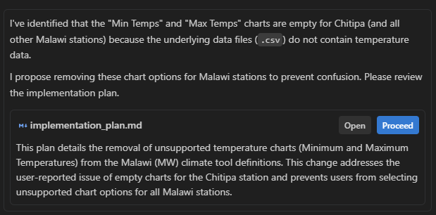 Let’s look at a real-world scenario: You are working on the climate-tool and notice cases where some graphs appear empty.